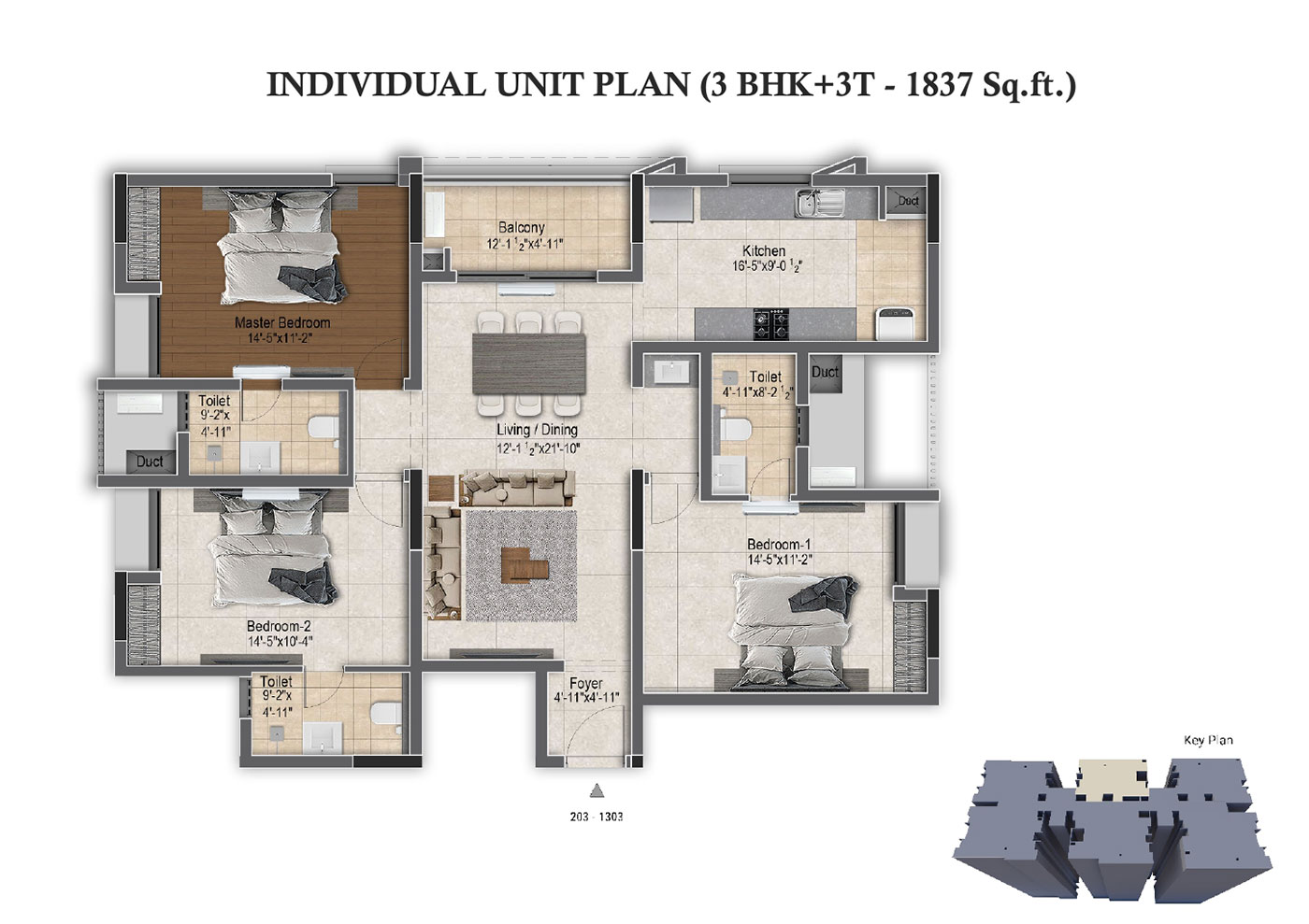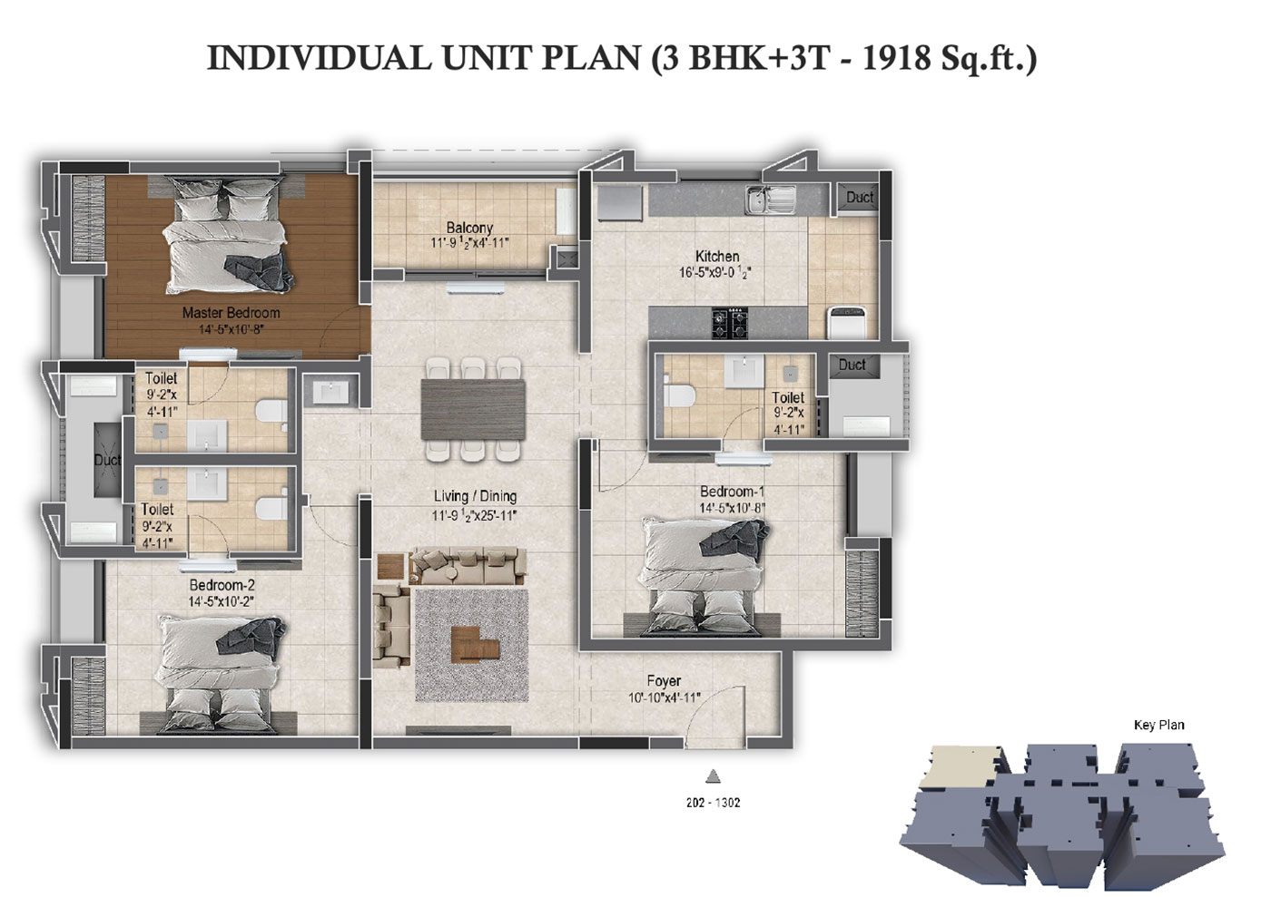 | 3 BHK 3T | 1837 Sq.ft - 1918 Sq.ft | ₹ 2.20 Cr Onwards* |